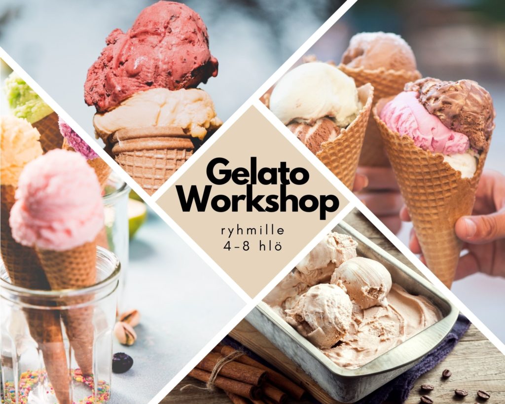 Workshopissa valmistamme kolme erilaista gelatoa italialaisin opein. Workshop sisältää kotikäyttöön muokatun reseptiikan sekä kotiin vietävät maistiaiset.